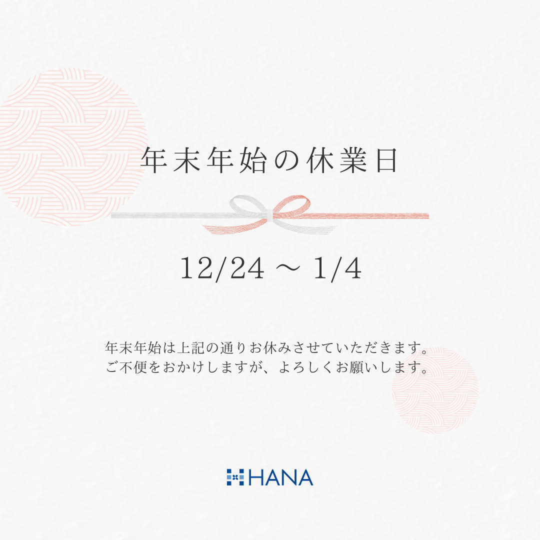 年末年始営業日(休業日)のお知らせ