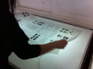 フィルムに傷が入っていないか、ゴミが付いていないかなどを1ページ1ページチェックしていきます。