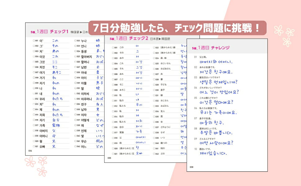 7日分勉強したら、チェック問題に挑戦!その週に勉強した単語を覚えているか確認しましょう。