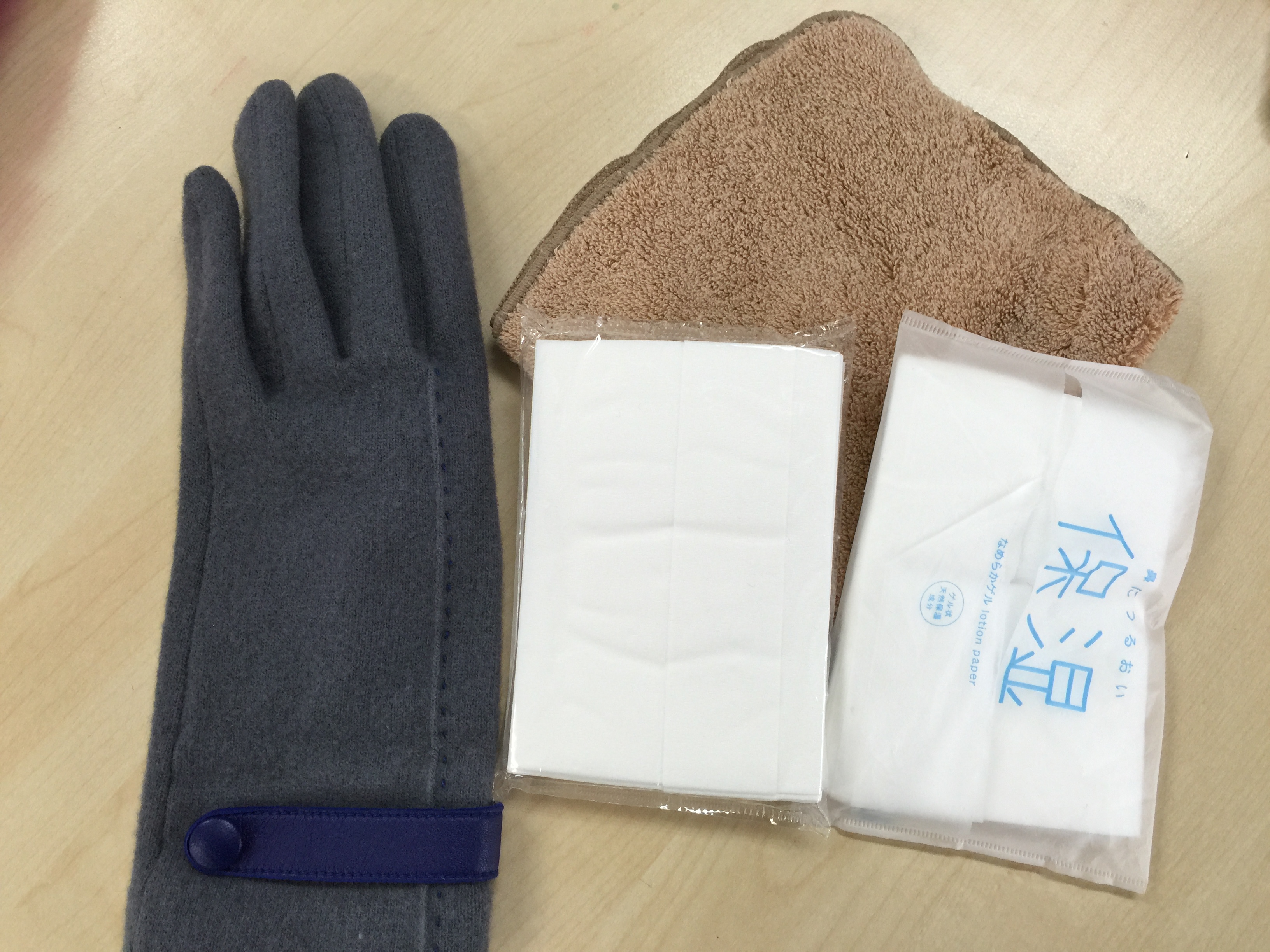 手袋は左手のみ。常にスマホを見ているので、右手はタッチパネル用にあけておきます。